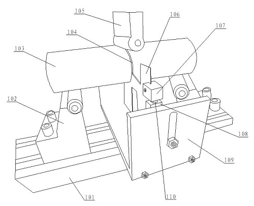实用性方面,该发明结构简单,便于安装,测试过程中夹持引伸计的稳定性好,由于是左右两个引伸计同时检测,测试施力点位移的成功率高。即使有一个引伸计测试失败,还能保证有另一个引伸计测得施力点位移数据,如果两个引伸计均能成功测得施力点位移数据,便于互相对比验证,确保测试精度。