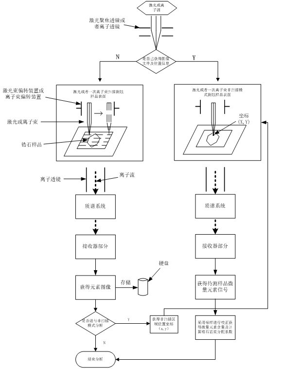 该发明公开了一种锆石微量元素及锆石/岩浆微量元素分配系数测量方法,主要分为两个步骤:第一步,通过激光或一次离子束扫描样品表面获得微量元素及基底元素图像,第二步通过获得到的微量元素的图像信息确定分析位置,偏转激光束或一次离子束到所选择的分析位置,以非扫描模式进行微量元素的含量的测量包括对锆石的微量元素的含量的测量以及对岩浆玻璃的微量元素的含量的测量。