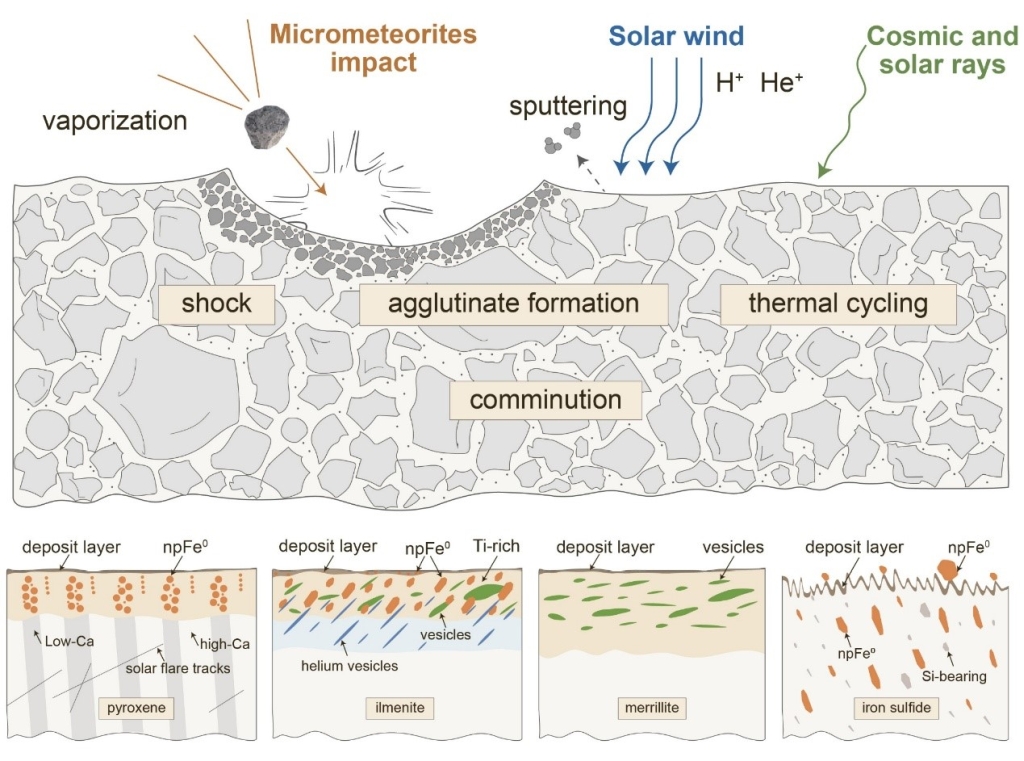 数十亿年来,月球表面遭受了强烈的太空风化作用,包括微陨石撞击、太阳风及银河宇宙射线的辐射。这些过程极大地改造了月球表面物质的微观形貌、晶体结构和化学成分,进而改变了月球的光谱特征,造成地质分析的多解性。因此,深入研究撞击和太阳风辐射与物质的相互作用过程与机理,是认识月球表面物质演化和空间环境变化过程的关键,并为行星的宜居环境及其演化提供了不可替代的作用。