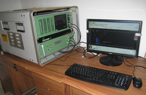 主要技术指标: 工作频率1-30MHz扫描,双通道发射天线,4通道接收天线,双通道300W发射机,探测高度80-1200km,数据产品,电离层频高图,电离层特征参数,电子浓度剖面。