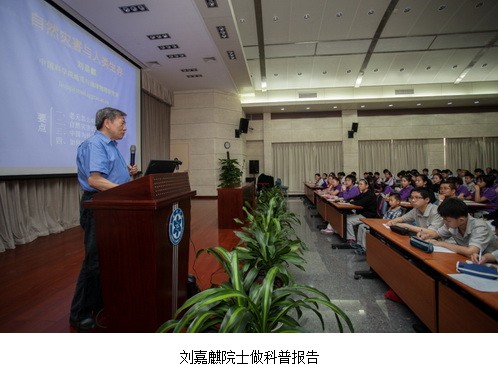 刘嘉麒院士针对自然灾害的原因、类型及人类如何应对做了题为“自然灾害与人类生存”的科普报告,报告激发了同学们的极大兴趣,会场时时响起阵阵掌声,在与刘院士的互动中,同学们提出了很多想象力丰富的问题。
