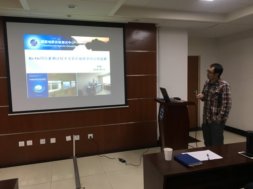 2018年10月11日,所级中心举办了第十期“技术沙龙”,共有来自公共实验室、学科组实验室技术人员50余人参加。本次沙龙邀请中国地质科学院国家地质测试中心李超副研究员作了题为“Re-Os同位素测试技术及其在地质学中应用进展”。李超副研究员从Re-Os基本原理、分析技术方法及在地质学中的应用三个方面进行了详细的阐述,技术人员围绕相关问题进行了讨论。此次技术沙龙加深了技术人员对Re-Os同位素测试技术的理解,尤其是测试方法具体工作细节的了解,促进了相关工作的交流和合作。
