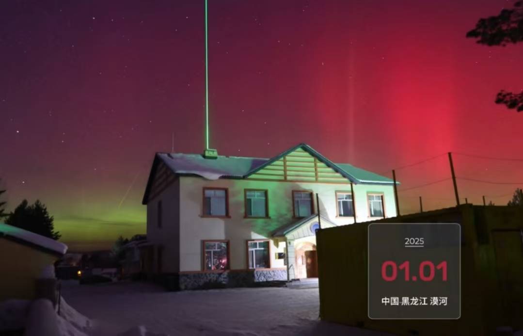 2025年1月1日,新年第一天,黑龙江漠河再次上演了一场极光盛宴。当晚,漠河北极村的天空被梦幻绚丽的极光所点亮,肉眼可以看到绿色、红色和紫色的极光在夜空中交相辉映,美不胜收。我所黑龙江漠河地球物理国家野外科学观测研究站(简称漠河国家站)捕捉到了这一难得的瞬间。
