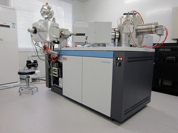 Triton Plus装配有9个全碳插拔式法拉弟杯和1个SEM检测器。该质谱仪主要用于微量(低含量)矿物和岩石样品的Rb-Sr、Sm-Nd同位素分析,Re-Os同位素分析、 ID-TIMS法单颗粒锆石U-Pb定年分析以及W同位素分析和新方法研发。