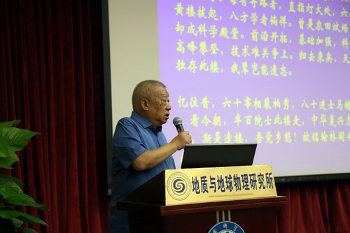 上午8点30分,开学典礼在庄严的国歌声中拉开序幕。在与会全体师生热烈的掌声中,叶大年为新生上了精彩的“开学第一课”。叶先生讲述了研究所“地6楼”的历史变迁,60年来,这栋楼里走出了40多位院士和一大批科技精英,涌现了一批奠基性的科技成果。几代科学家在这里交替接力,为我国国民经济建设、国防和科学事业的发展以及优秀人才的培养做出了卓越的贡献。通过对“地6楼”辉煌历史的回忆,叶先生勉励同学们要不忘初心、牢记使命,要继承和发扬老一辈科学家的爱国主义精神和科学精神,告诫大家要认真做事、有始有终、砥砺前行,并祝愿大家在未来为研究所增光添彩,成为国家栋梁。