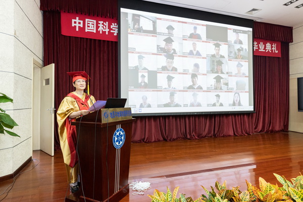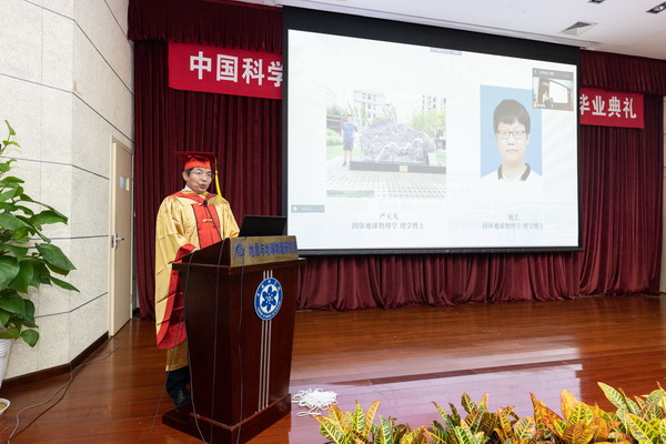 毕业典礼在庄严的国歌声中拉开帷幕。所长底青云院士首先致辞。她向圆满完成学业的全体同学表示热烈的祝贺,向关心和支持毕业生的导师和家长们致以衷心的感谢。底青云向同学们提出了几点希望:一是希望同学们做一个理想远大,境界高远的人。勉励同学们以老一辈科学家为榜样,将个人理想融入时代发展,以国家富强和民族昌盛为己任,在新的征程中创造新业绩,实现人生新价值。二是,希望同学们做一个勇于创新、追求卓越的人。“唯实、求真、协力、创新”,是我所长期形成的光荣传统和真实写照,求实创新是从事科研工作需要时刻保持的态度。期望同学们勇于创新、追求卓越,积极投身到中华民族伟大复兴的实践中。三是,希望同学们做个脚踏实地、知行合一的人。告诫同学们,求真务实、持之以恒、踏踏实实地做好每一项工作,做到言必信行必果。最后,底青云祝愿全体毕业生工作顺利、前程似锦!