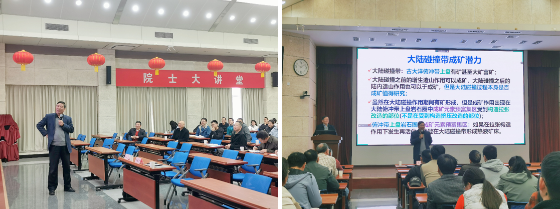 郑院士从20世纪板块构造理论入手,指出传统板块构造理论忽视了过去板块汇聚边缘转化为陆内造山带这一重要地质现象,难以解释大陆地质以及碰撞造山带热液成矿作用。而21世纪板块构造理论将现今陆内造山带视为过去陆缘造山带的演化产物,两者之间存在继承和发展关系。接着为大家详细介绍了造山带的分类与成因,并用一些矿床实例帮助大家深入理解大陆碰撞带热液成矿作用。在碰撞造山带,可能存在大洋板块俯冲引起的地幔楔成矿元素预富集区,这一成矿元素预富集区要么直接部分熔融引起垂向增生大陆边缘的热液成矿作用,要么在大陆碰撞或者碰撞后阶段的拉张体制下发生部分熔融,导致成矿元素的进一步富集乃至成矿。一般在陆内造山带的拉张构造作用下发生再活化,结果在碰撞造山带的碰撞作用之后形成热液矿床。最后,郑院士总结了汇聚板块边缘成矿作用的特点,并根据自己的研究和调研,分析了大陆碰撞带成矿潜力。