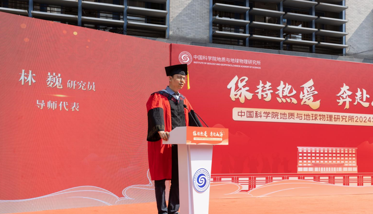 林巍研究员代表全体导师致辞。他向毕业生表达了热烈的祝贺,希望同学们奋发图强、永不言败、保持初心、勇于创新,肩负起时代赋予的责任和使命。