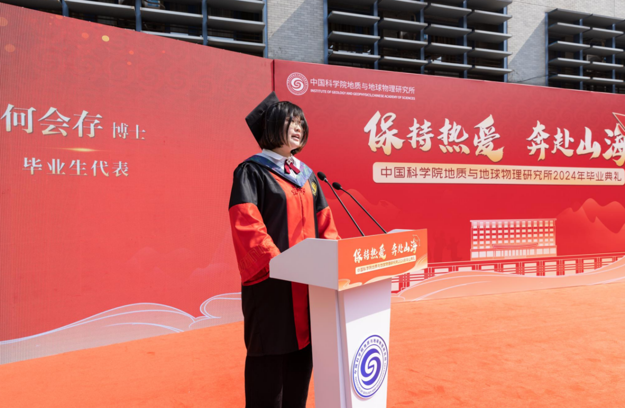 何会存代表毕业生发言。她表示要牢记肩上责任和使命,将自己的专业所学与服务国家需求相结合,为社会和国家的进步贡献力量。