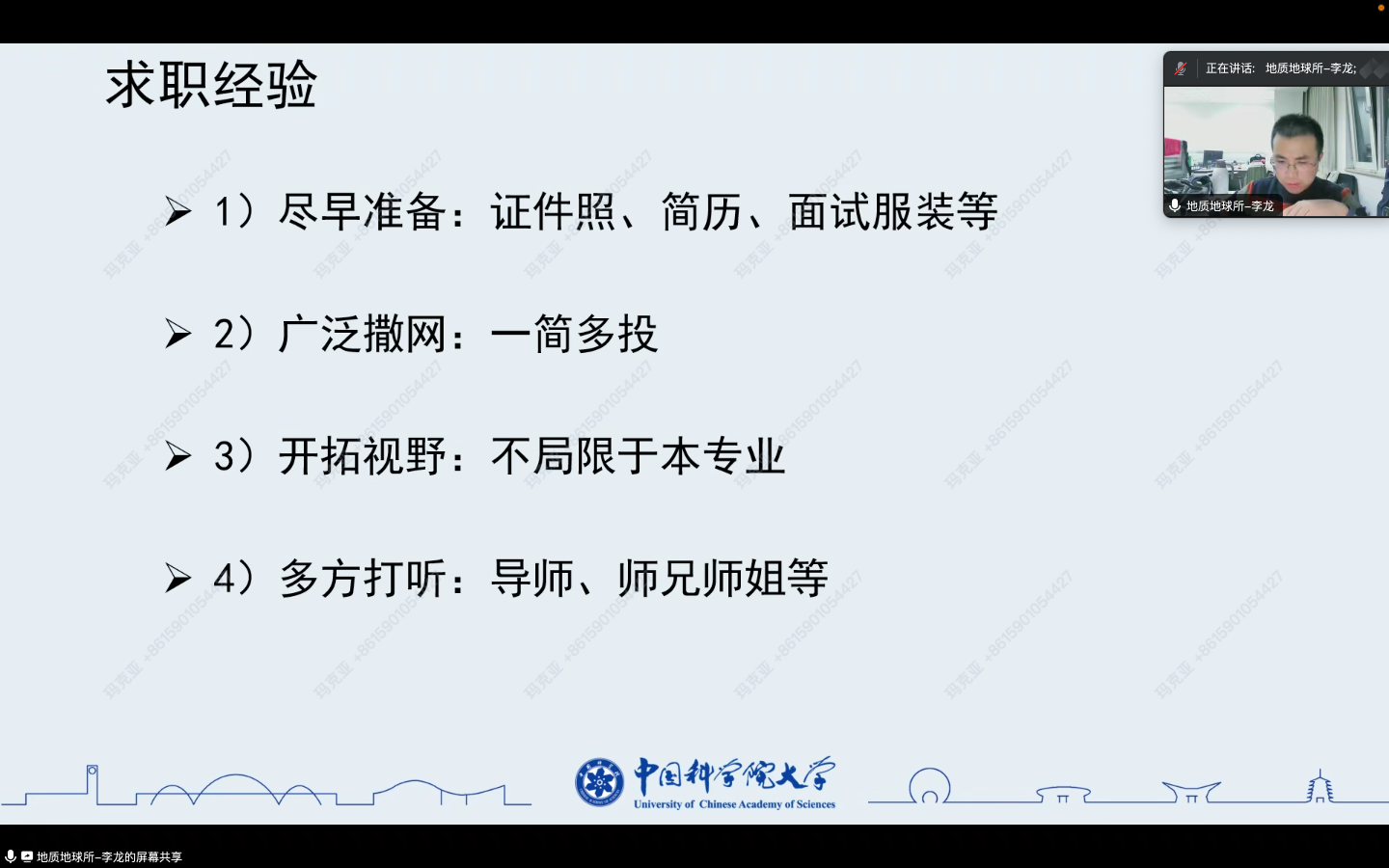 毕业生李龙为我们揭开在地震局工作的神秘面纱,分享了他从投简历、面试到入职的整个求职经历,帮助同学们了解到求职比较重要的时间节点、考试面试求职技巧,以及如何合理安排时间,帮助大家做好未来职业规划。