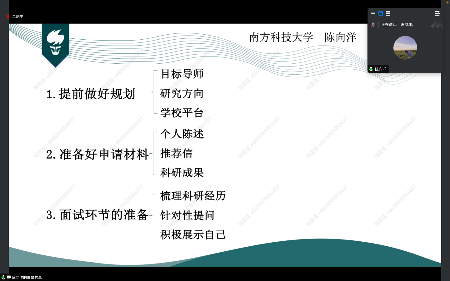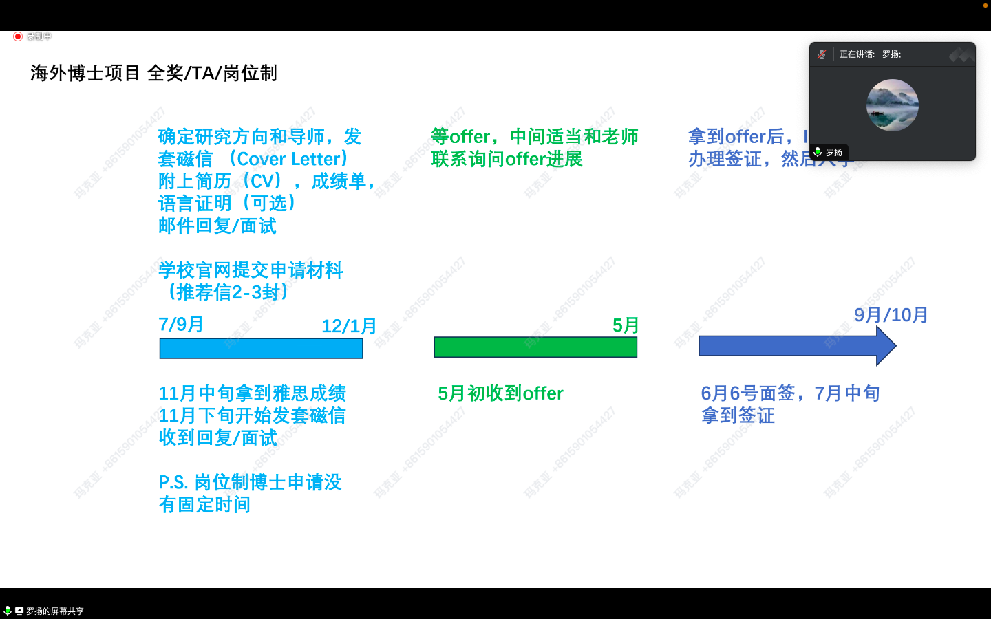 毕业生陈向洋详细讲解了博士申请的全过程,从选择研究方向、联系导师、准备申请材料,到面试技巧,分享了一些实用的申请策略和建议。这对正在准备或计划申请博士的学生来说,无疑是一份宝贵的资源。