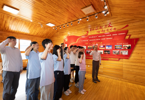实习期间,结合当地实际,将思政教育融入了野外实习。由师生组成的野外实习临时党支部,与北极村党支部、武汉大学实习团队临时党支部一起,以“身在最北方、心向党中央”为主题开展了联学共建活动。通过参观北极村流动党员驿站,带领同学回顾北极村的历史,聆听驻扎在这片土地上默默奉献的优秀党员事迹,激发同学们责任感和使命感。参观途中,刘立波研究员带领党员同学们在庄严的党旗下重温入党誓词,重忆入党初心,再次接受党性洗礼。重温入党誓词不仅是对过去的回顾,更是对未来的承诺,同学们纷纷表示,今后将坚持理想,锤炼党性作风,践行出行使命,始终以共产党员的标准来严格要求自己,在学习生活中发挥积极作用。