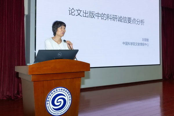 中国科学院文献情报中心研究馆员、中国科学院大学教授刘筱敏作题为《论文出版中的科研诚信要点分析》的专题报告。刘筱敏结合自身在文献数据库、科技期刊出版及科研诚信监测领域的丰富经验,通过政策解读、案例分析等,对学术论文署名规范、近年来国内外学术论文撤稿及科研不端问题等内容进行了深入剖析,指出科研工作者必须恪守学术底线、遵循科研规范,以负责任的态度开展研究、产出成果。