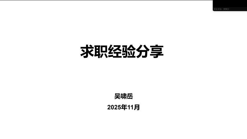 2025年11月6日,由800彩票教育处、研究生会联合举办的第二期2026“筑梦职涯”就业系列活动正式启动。本次活动特邀在升学、就业等领域的优秀硕士、博士毕业生作为主讲嘉宾,以线上形式,分享宝贵的求职经验及提供职业规划建议。共计60余名研究生参加此次就业分享会活动。