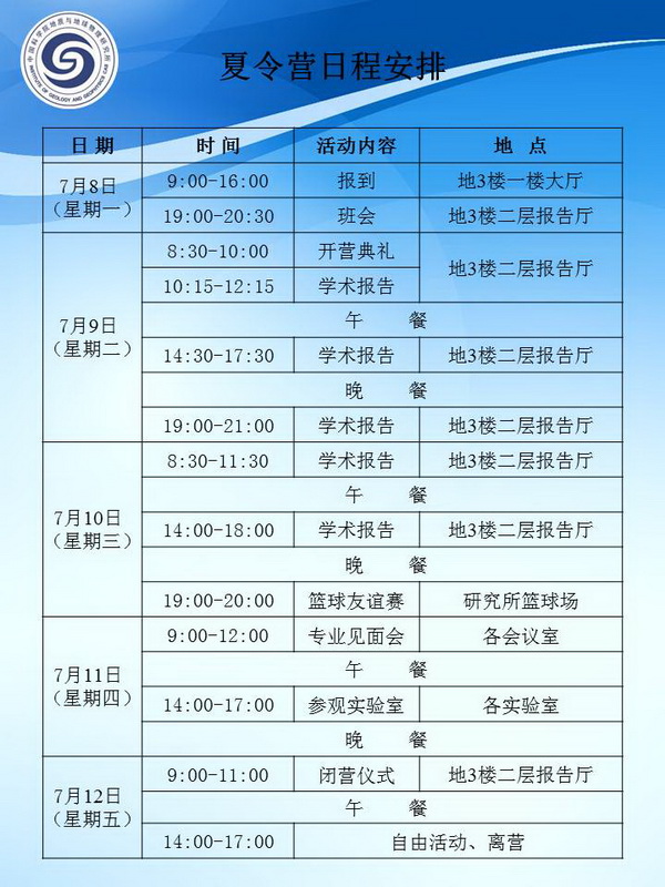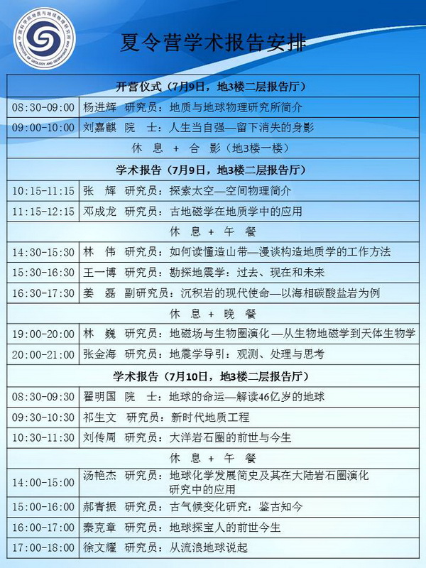【7.8-7.12】第六届地球与行星科学大学生夏令营日程及学术报告安排