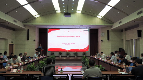 本次会议主题为2022年地球与行星科学学院课程思政建设工作。周元泽主持会议。
