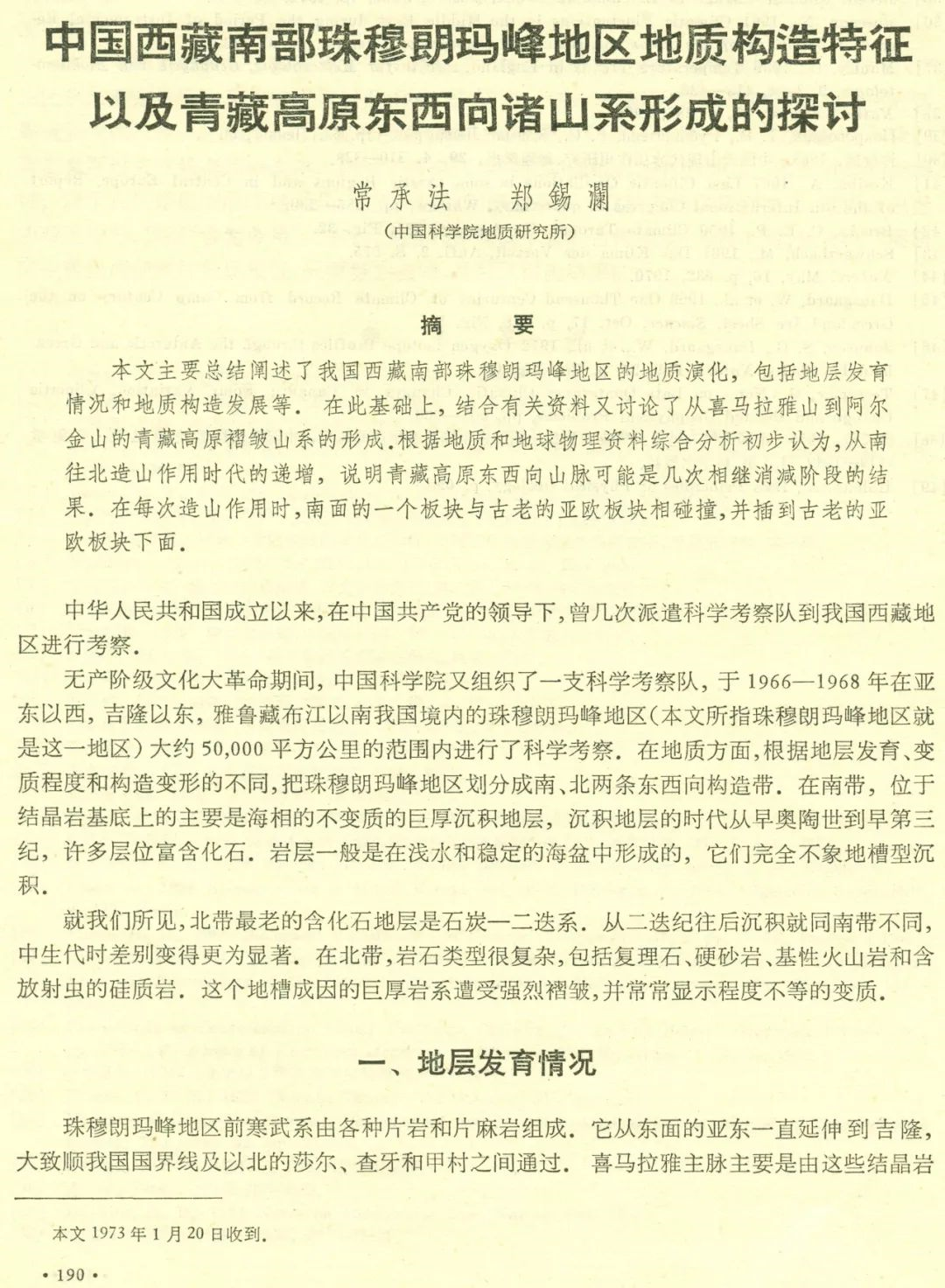 英国地质学家赫伦(A. M. Heron)和奥德尔(Noel Odell)早在1920年代珠峰探险考察时就发现珠峰峰顶为沉积岩,奥德尔还在沉积的灰岩中发现了化石,然而珠峰峰顶灰岩是什么时候形成的,曾经是国际地质界长期争论不休的问题,有些国外学者断定峰顶岩石形成于石炭-二叠纪(距今约3亿年),也有些人推测是早古生代(距今约5.5亿年),但均没有确凿的证据。