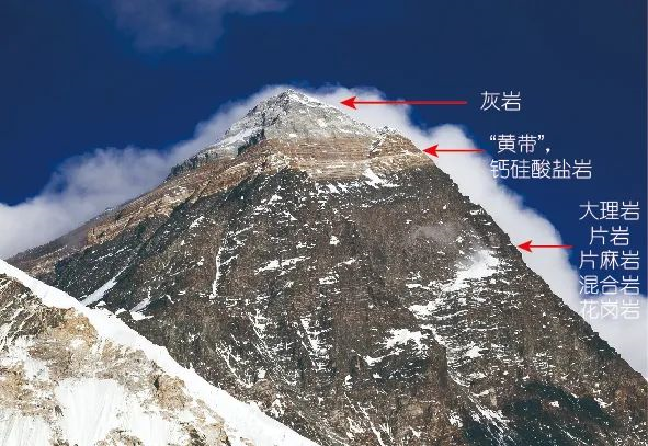 珠穆朗玛峰西南壁的地层(图片来源于网络)
