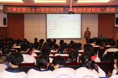 兰州油气资源研究中心孟仟祥研究员以生动、简洁、易于理解的语言向66中学的师生介绍了石油、天然气的成因及我国能源分布概况,精彩的报告获得师生们的阵阵掌声。