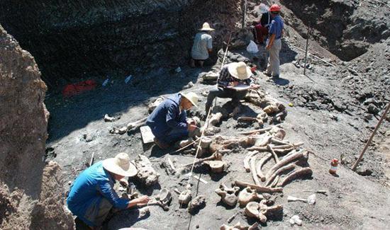 2015年,昭通水塘坝发掘出土了一具剑齿象骨架化石,完整程度约50%。由于经过600万年的地层挤压,骨骼变形严重,埋藏前又遭遇风化,且长期浸泡在潮湿环境中,出土时骨骼十分疏松,现场抢救性发掘人员用打套箱取回昭阳区博物馆保存。