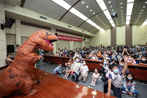 由研究生志愿者李紫源等人创作的科普剧《一眼万年》以历史学家、原始人类和恐龙的视角进行展开,通过不同的视角描述地球的历史。科普剧通俗易懂、幽默诙谐,深受在场观看的大、小朋友的欢迎。
