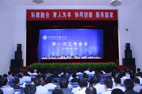 2012年9月6日至7日,国科大召开第一次工作会议,中科院院长、时任国科大校长白春礼作题为《科教融合 育人为本 协同创新 服务国家》的报告
