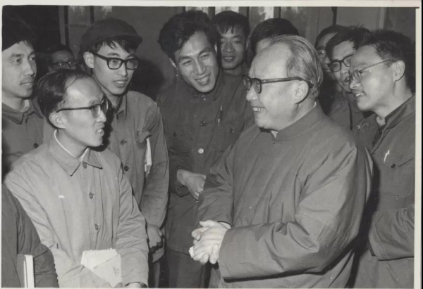 1978级研究生开学典礼上,钱伟长教授与学生交谈