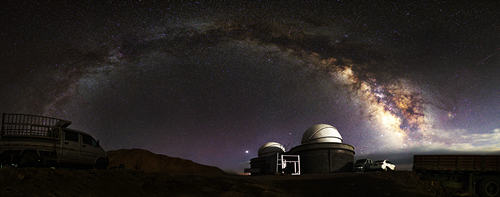 2021年七夕的银河拱门,拍摄于施工中的赛什腾C点,中国科技大学的2.5米巡天望远镜、中科院国家天文台的1米SONG望远镜、西华师范大学的50BiN双筒望远镜、中科院地质与地球物理所的1.8米和80厘米行星观测望远镜均建于这个平台。供图/洪文瀚