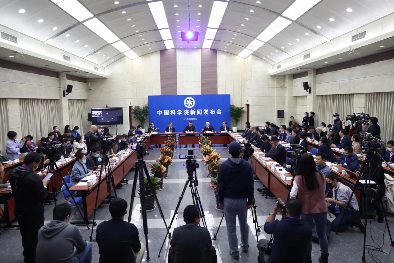 10月19日,中國科學院發布了嫦娥五號月球科研樣品最新研究成果。圖為新聞發布會現場。中國科學院科學傳播局科技攝影聯盟供圖