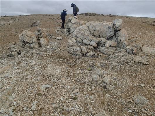 爬到海拔5380米时,他们发现了一处“长”在地里、露出地表、宽约两三米的伟晶岩。两人围着岩石露头观察了一会儿,确定这是锂辉石矿化伟晶岩。