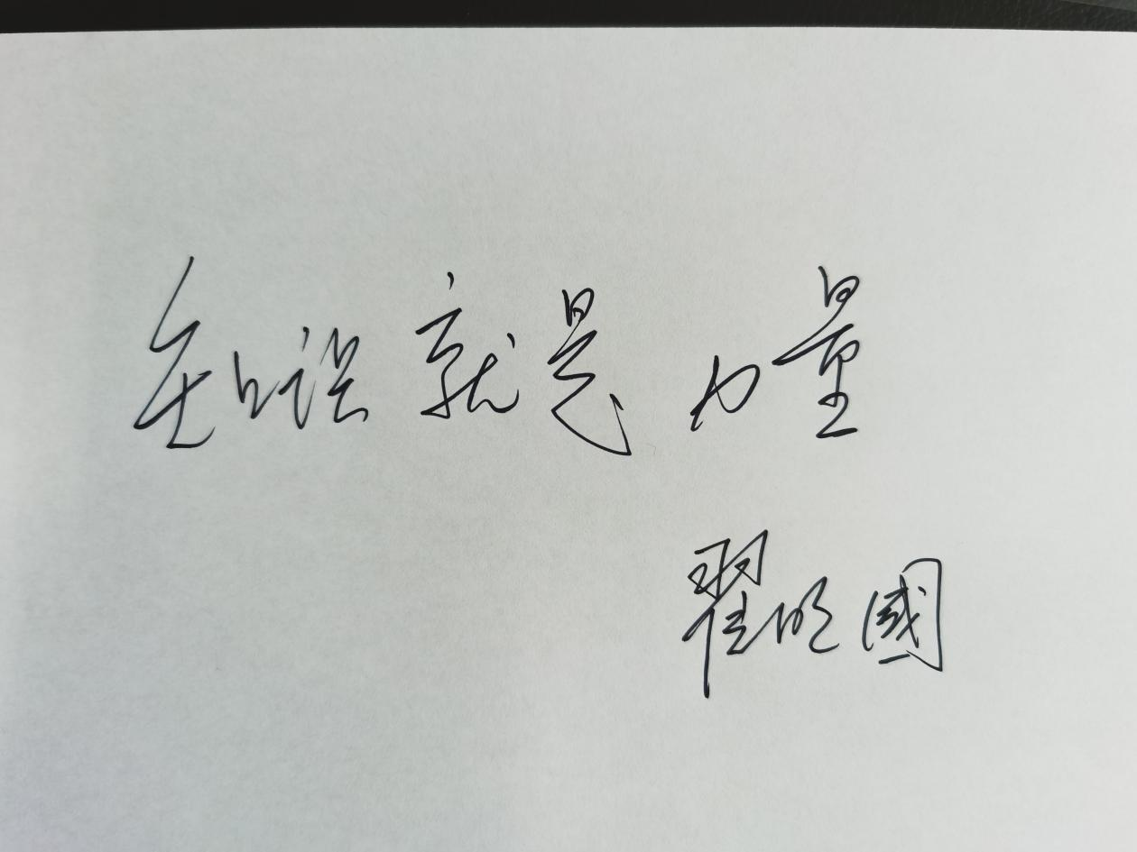 翟明国给青年学子的手写寄语。受访者供图