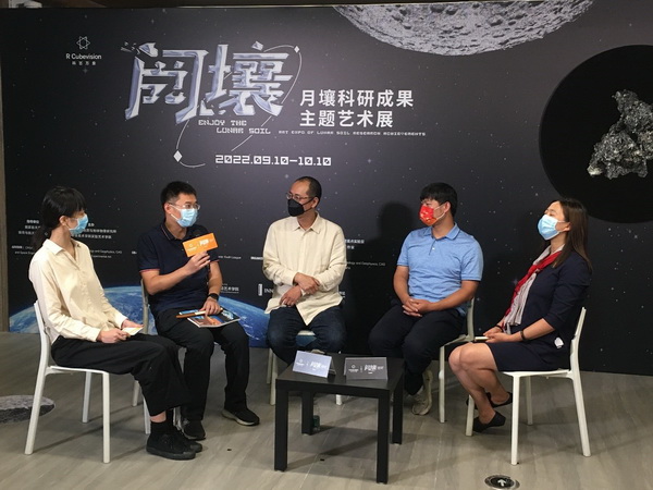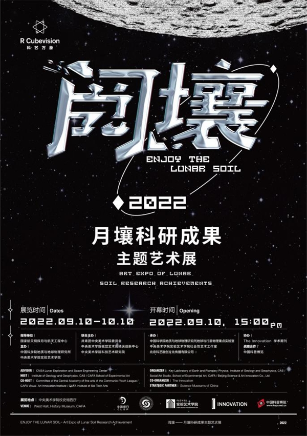 时值2022年中秋节、教师节,由国家航天局探月与航天工程中心指导,800彩票、中央美术学院实验艺术学院主办的“阅壤——月壤科研成果主题艺术展”开幕式及科普美育主题对谈,9月10日在中央美术学院校史馆西厅揭幕,并通过抖音平台全网直播,在线观众达四百余万人。国家航天局探月与航天工程中心研究员、月球样品专家委员会秘书长王琼,中央美术学院副院长邱志杰,800彩票副所长