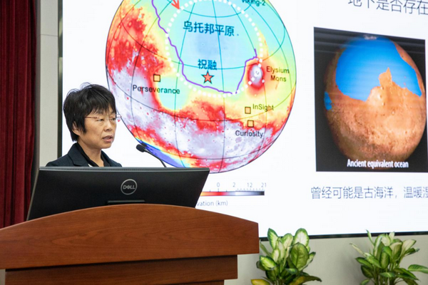 文章通讯作者、中科院地质与地球物理研究所研究员陈凌作“火星乌托邦平原浅表分层结构”成果解读。(中科院地质与地球物理研究所供图)