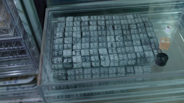 被切割成小方块的古地磁研究样本。王一鸣供图