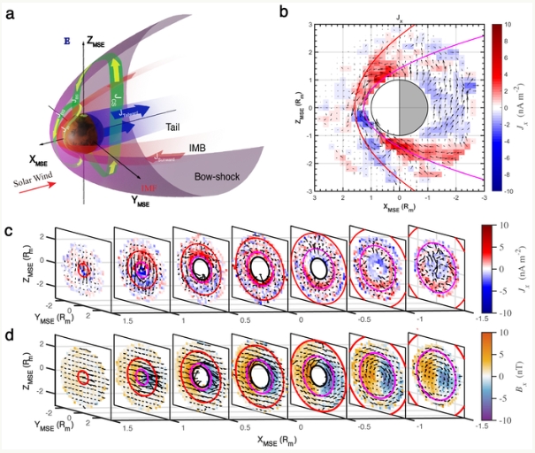 此前,有不少学者推测火星应该存在类似地球一样的电离层电流体系。有人提出火星的电离层电流体系是由电离层上面的太阳风驱动。也有人提出,火星高层大气的中性风场会驱动电离层电流。“包括我国祝融号在内的火星表面磁场探测器的观测数据都证实了火星表面磁场是存在着日变化的,但目前人们依旧缺乏对火星电离层磁场或电流的直接认识。”戎昭金说,“为了了解火星电离层电流的真实分布特征,我们开展了此次研究。”