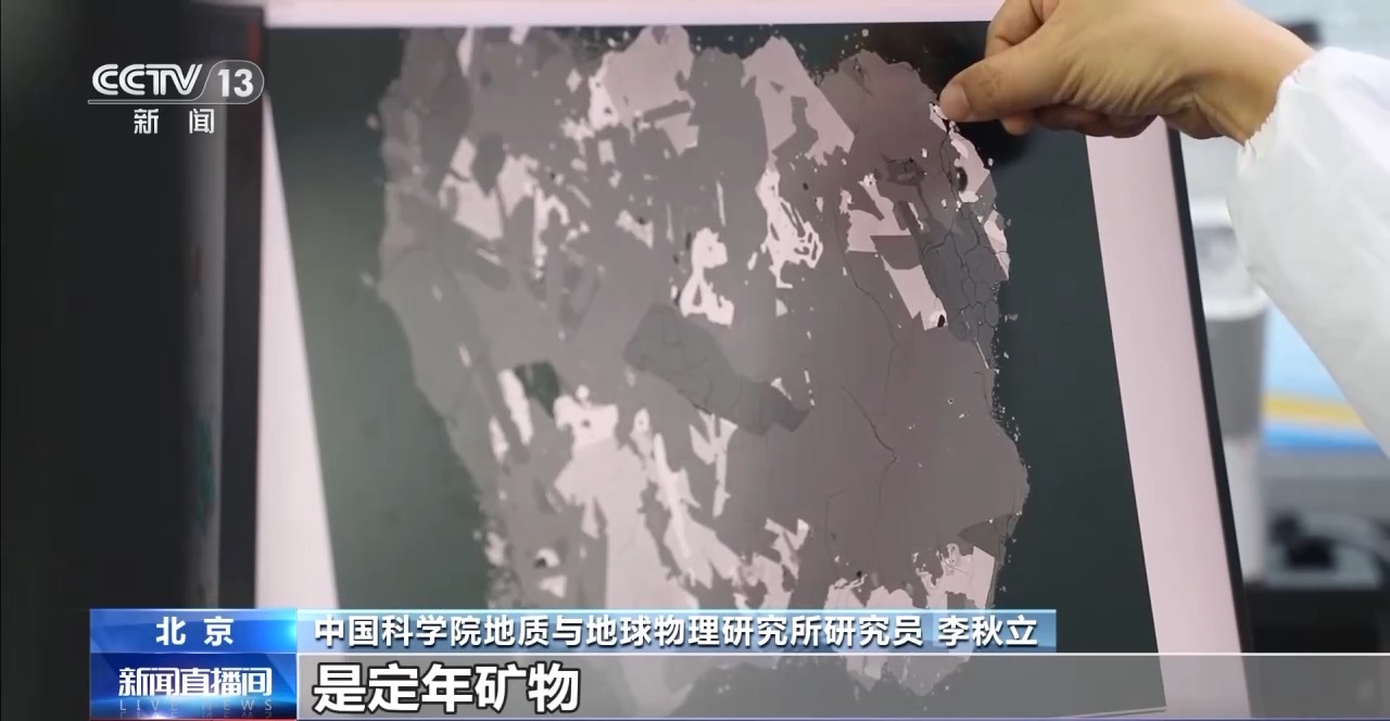 800彩票研究员 李秋立:我们要在里边首先找到记录时间的小矿物,找出来之后变成离子激发出来,它这里边哪是定年矿物呢?要把它放到最小的这一颗白点,是定年矿物。
