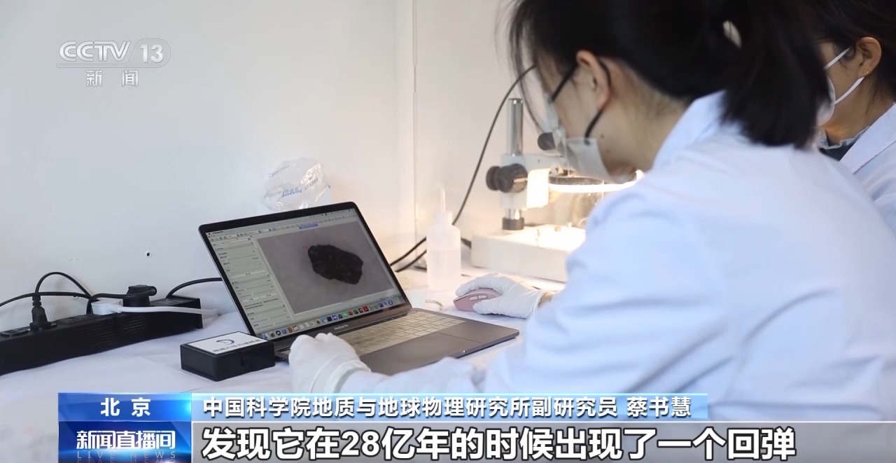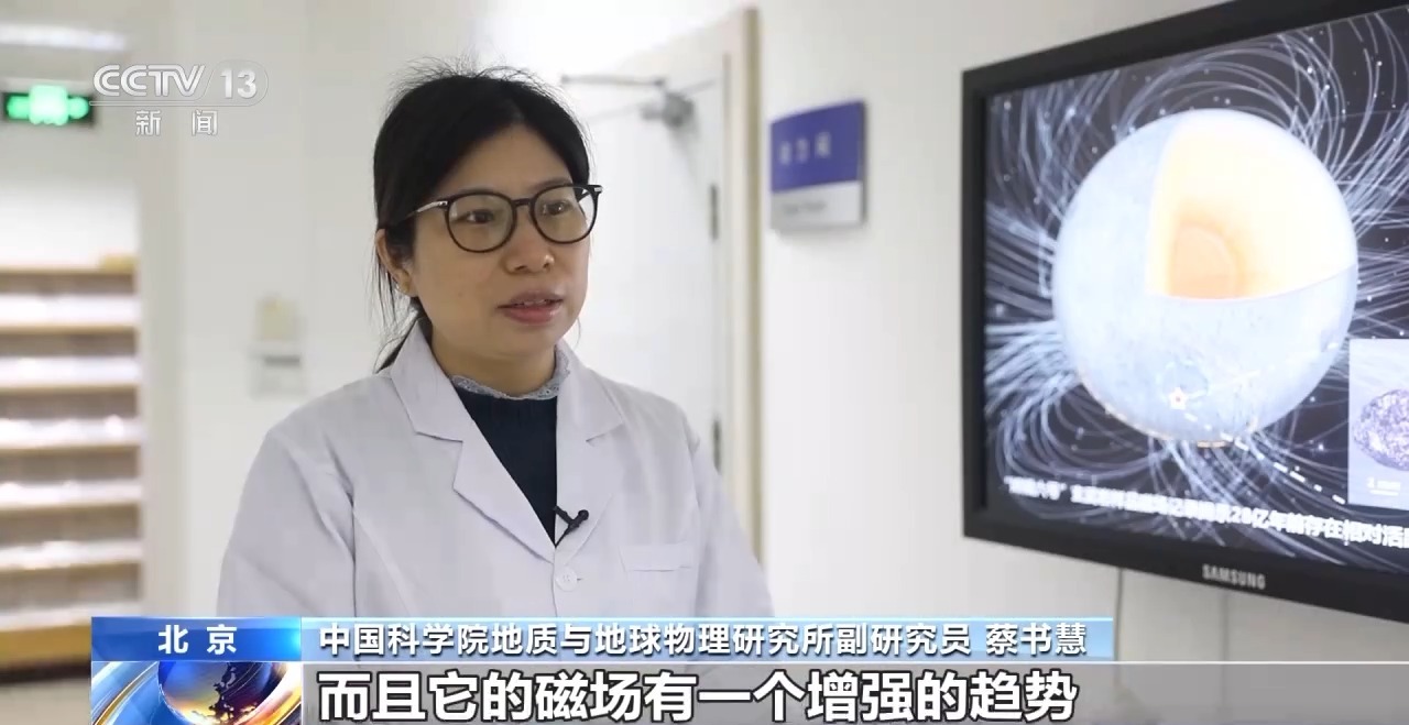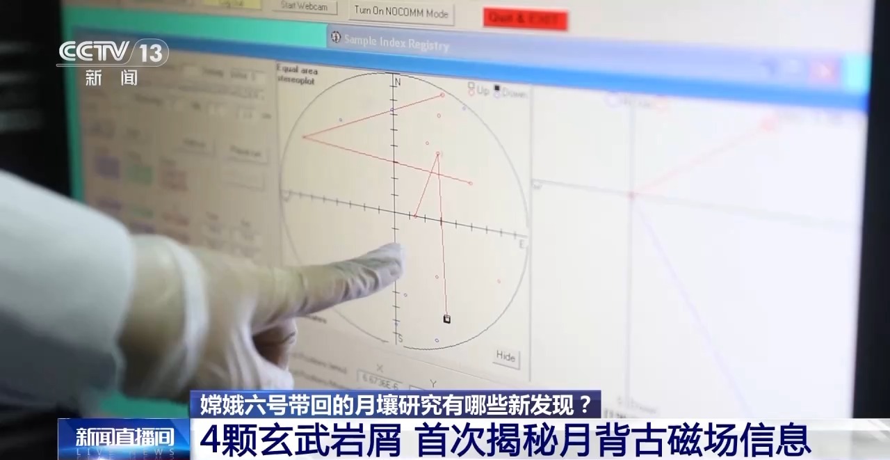 800彩票副研究员 蔡书慧:我们挑出来的4颗毫米级的玄武岩岩屑的研究,发现月球在距今28亿年的时候具有一个磁场,而且它的磁场有增强的趋势。