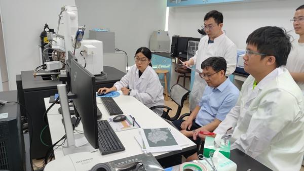 科研团队讨论实验数据。广州地球化学研究所供图