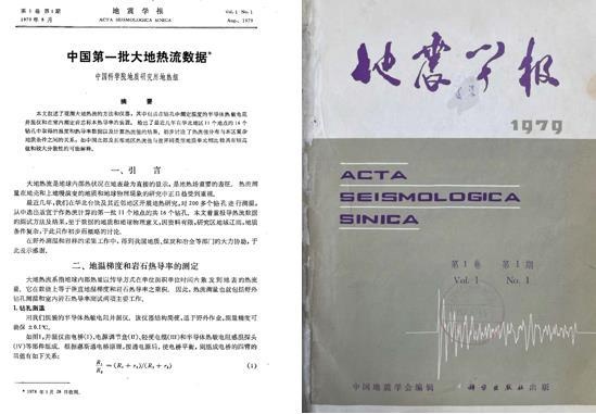 1979年中国第一批大地热流数据发表在《地震学报》第一期第一卷