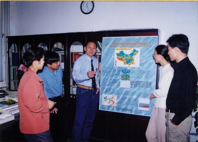 1995年向学生讲解中国大陆地区大地热流分布及岩石圈热结构