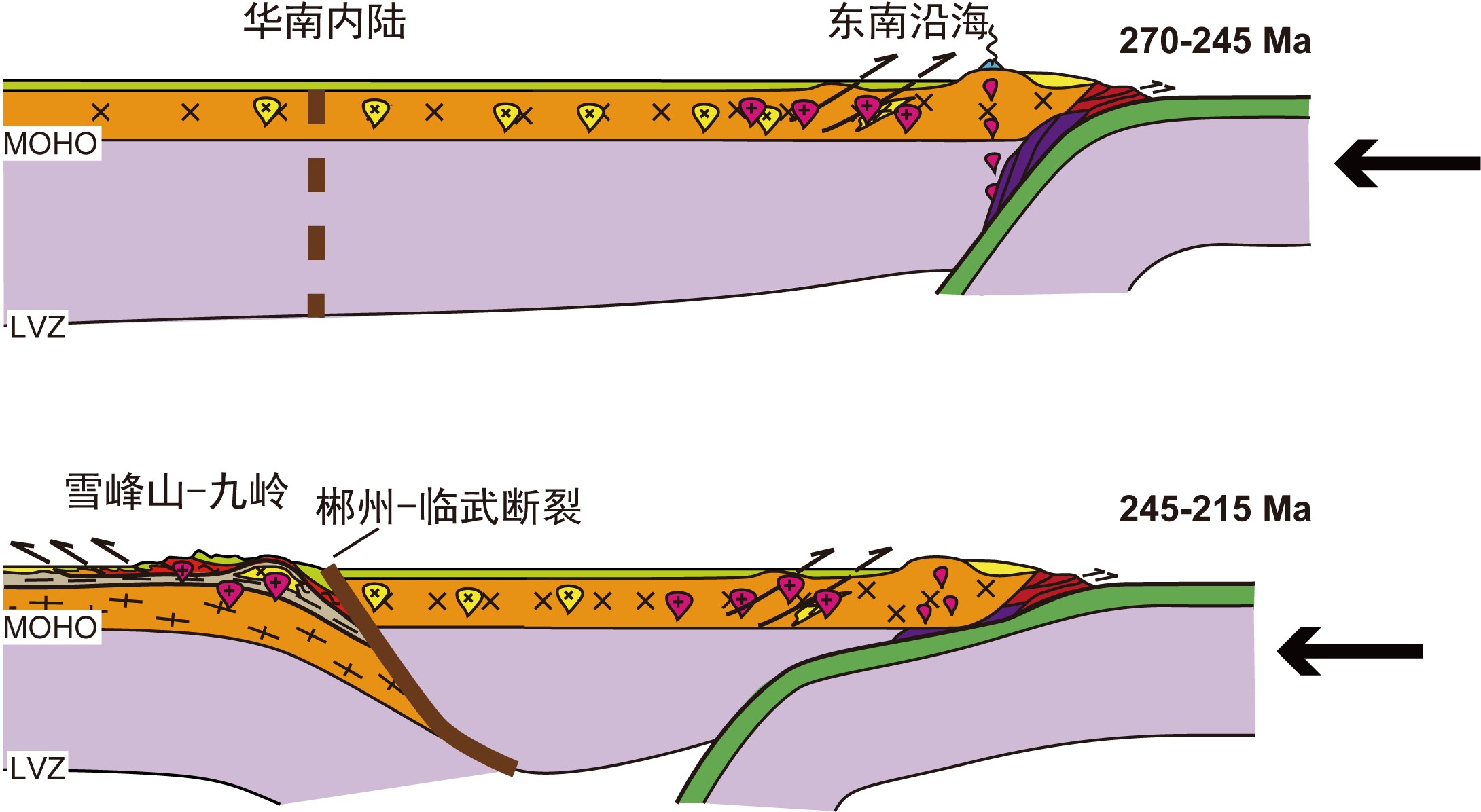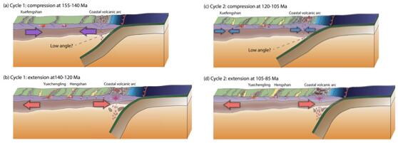 (2)华南的周期性挤压和伸展(Chu et al., 2019, 2020):