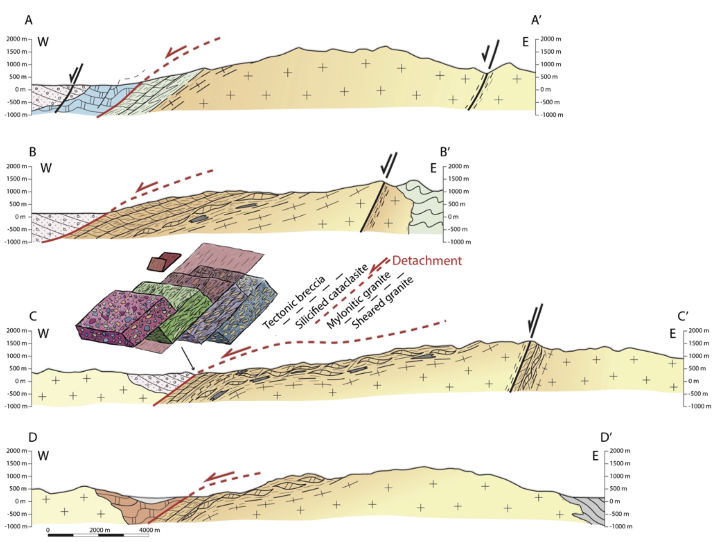2.中国东部晚中生代伸展构造 (1)华南内陆伸展构造的拆离断层构造的精细刻画 (Chu et al., 2019):