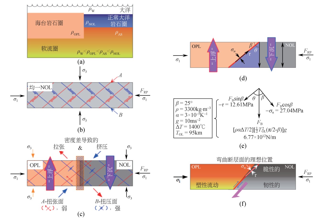 1 岩石圈内部物质组成差异导致的密度差是俯冲带形成基本条件和机理的定性和定量示意 (Niu et al.2003)