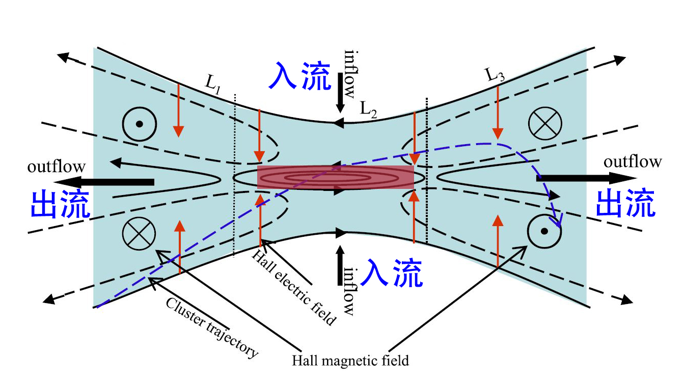 2015年,NASA发射了由四颗卫星构成的星座MMS,用于收集有关磁重联现象的粒子信息,MMS超高的时空分辨率为重联扩散区电子尺度动力学的研究提供了契机。在任务的第一阶段(2015-2016年),MMS反复穿越日侧磁层顶,对非对称磁重联进行研究。在第二阶段(2017年),卫星轨道穿越了对称度极高的磁尾,这种最简单的对称位形,可以排除其他复杂因素的干扰,有利于纯粹从基本物理角度出发来探索磁重联的核心问题。