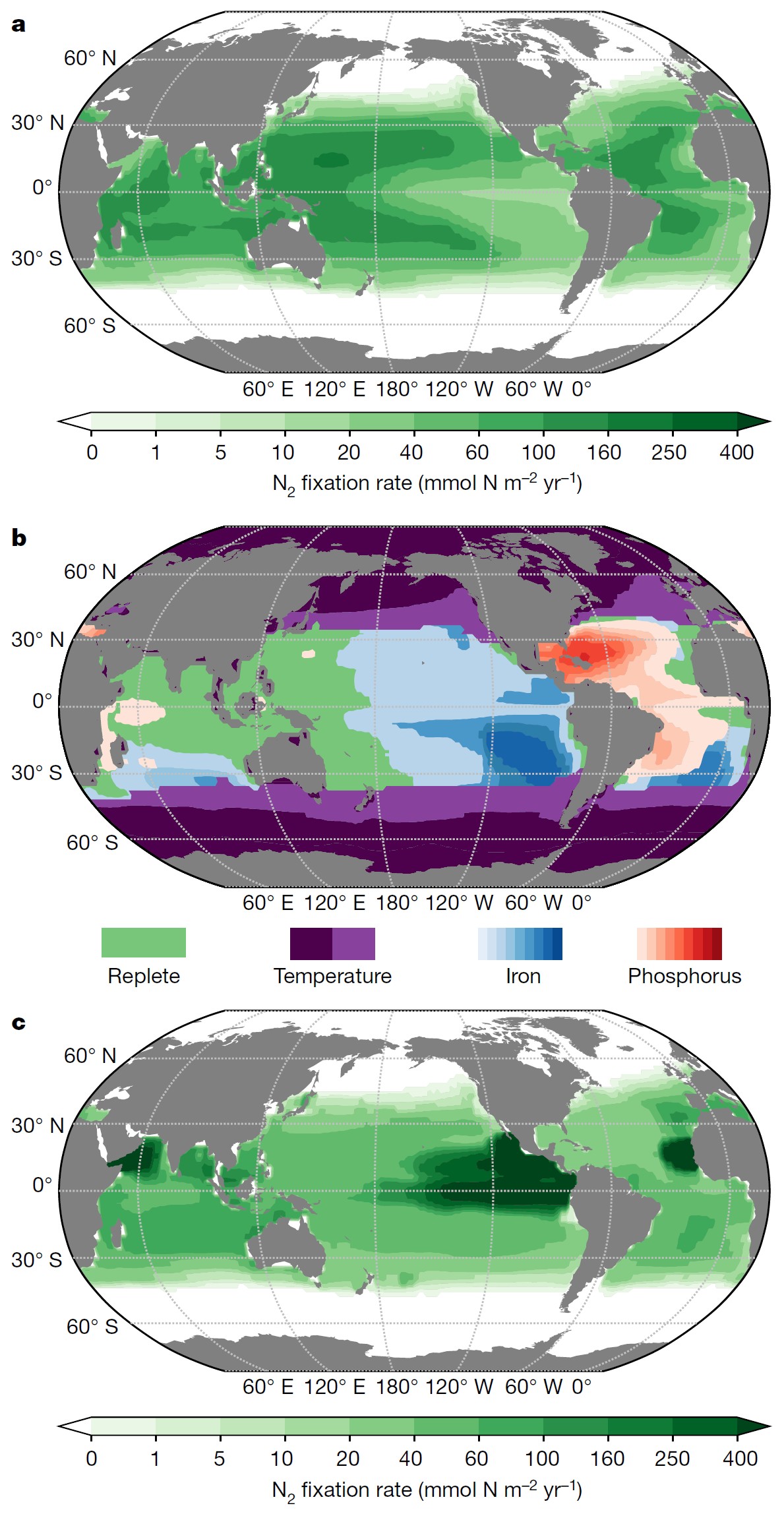 Wang W L, Moore J K, Martiny A C, et al. Convergent estimates of marine nitrogen fixation[J]. Nature, 2019, 566(7743): 205-211.(原文链接)