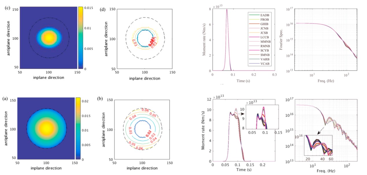 为了验证自停止的破裂到底是不是由地震产生的真实的物理现象,我们依据实际地震进行了模拟研究,给定一系列台站,台站记录到的地震图、地震矩、地震矩速率、破裂谱与实际资料完全符合,因此这就是一个真实的破裂。