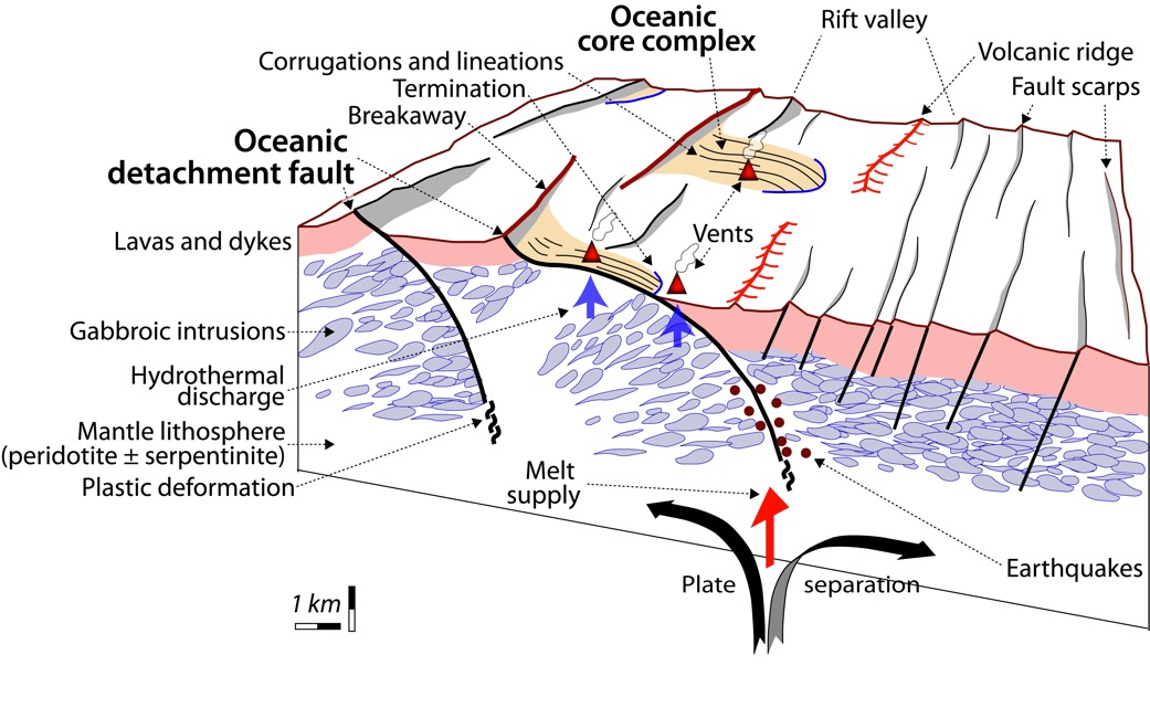 Escartín J, Canales J P. Detachments in oceanic lithosphere: Deformation, magmatism, fluid flow, and ecosystems[J]. Eos, Transactions American Geophysical Union, 2011, 92(4): 31-31.(原文链接)