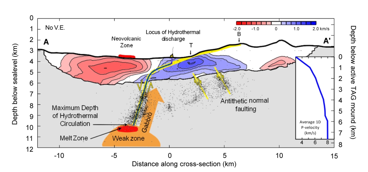 Canales J P, Sohn R A, Demartin B J. Crustal structure of the Trans-Atlantic Geotraverse (TAG) segment (Mid‐Atlantic Ridge, 26° 10′ N): Implications for the nature of hydrothermal circulation and detachment faulting at slow spreading ridges[J]. Geochemistry, Geophysics, Geosystems, 2007, 8(8) : Q08004. (原文链接)