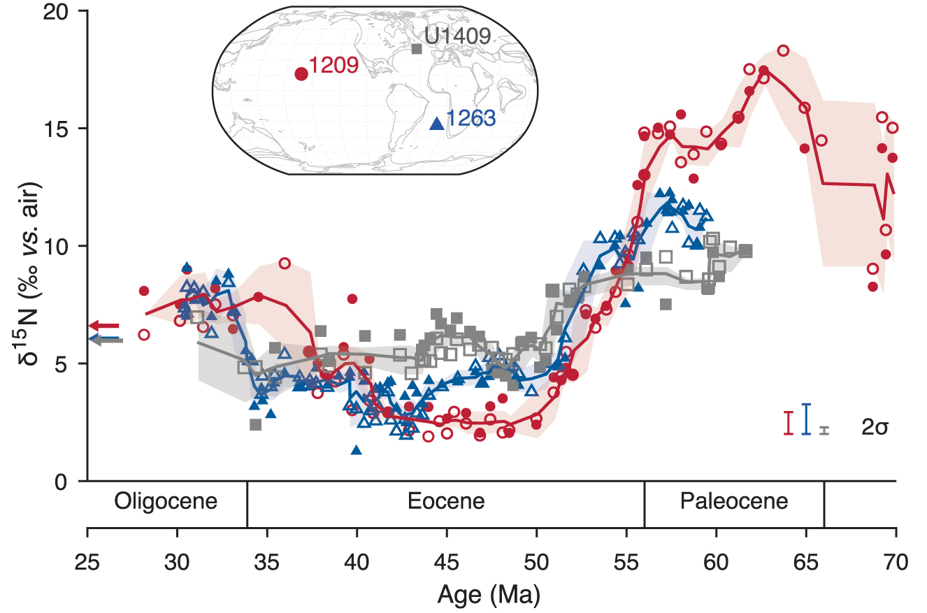 Kast E R, Stolper D A, Auderset A, et al. Nitrogen isotope evidence for expanded ocean suboxia in the early Cenozoic[J]. Science, 2019, 364(6438): 386-389.(原文链接)