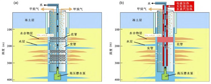 天然气水合物资源量巨大,但受不同矿藏和储存形式的限制,开采具有很多挑战。全球诸多国家都进行天然气水合物的试验性开采,主要包括加拿大的冻土区、美国的阿拉斯加、墨西哥湾、日本、印度和中国等。天然气水合物原位开采的思路是原位打破相平衡使其发生分解,从而回收可流动甲烷气体,主要方法包括降压法、加热法、注抑制剂和置换等方法,其中降压法是目前的主流方法,例如日本Nankai海槽的天然气水合物降压开采,降压开采持续时间6天,日均产气率20000ST m3,日均产水率200m3,累计产气量为120000ST m3,因地层出砂而停产。